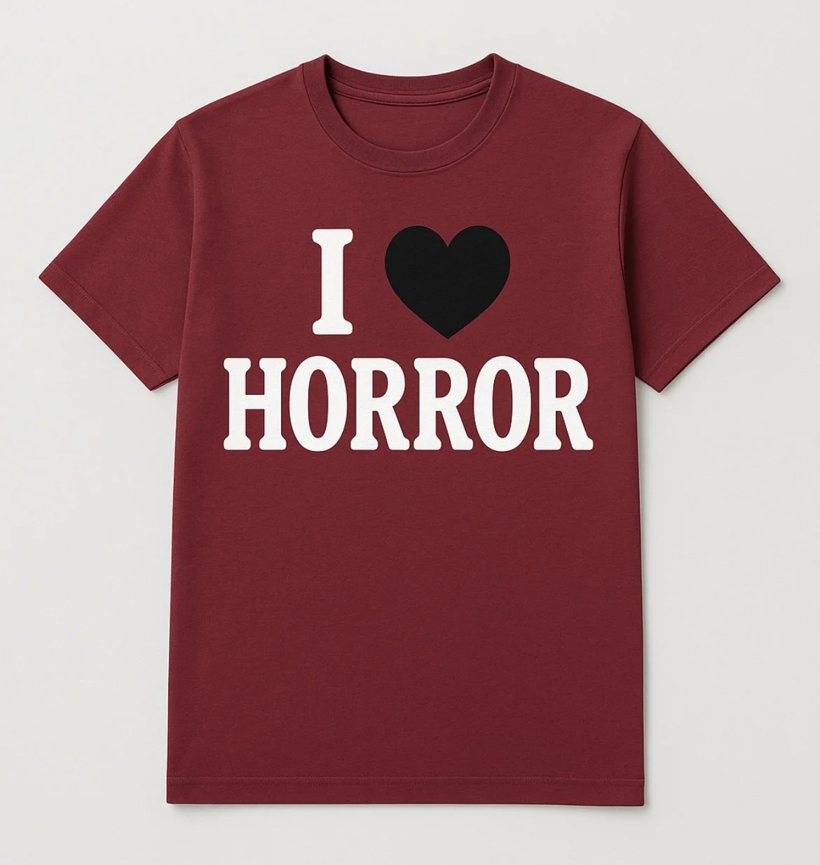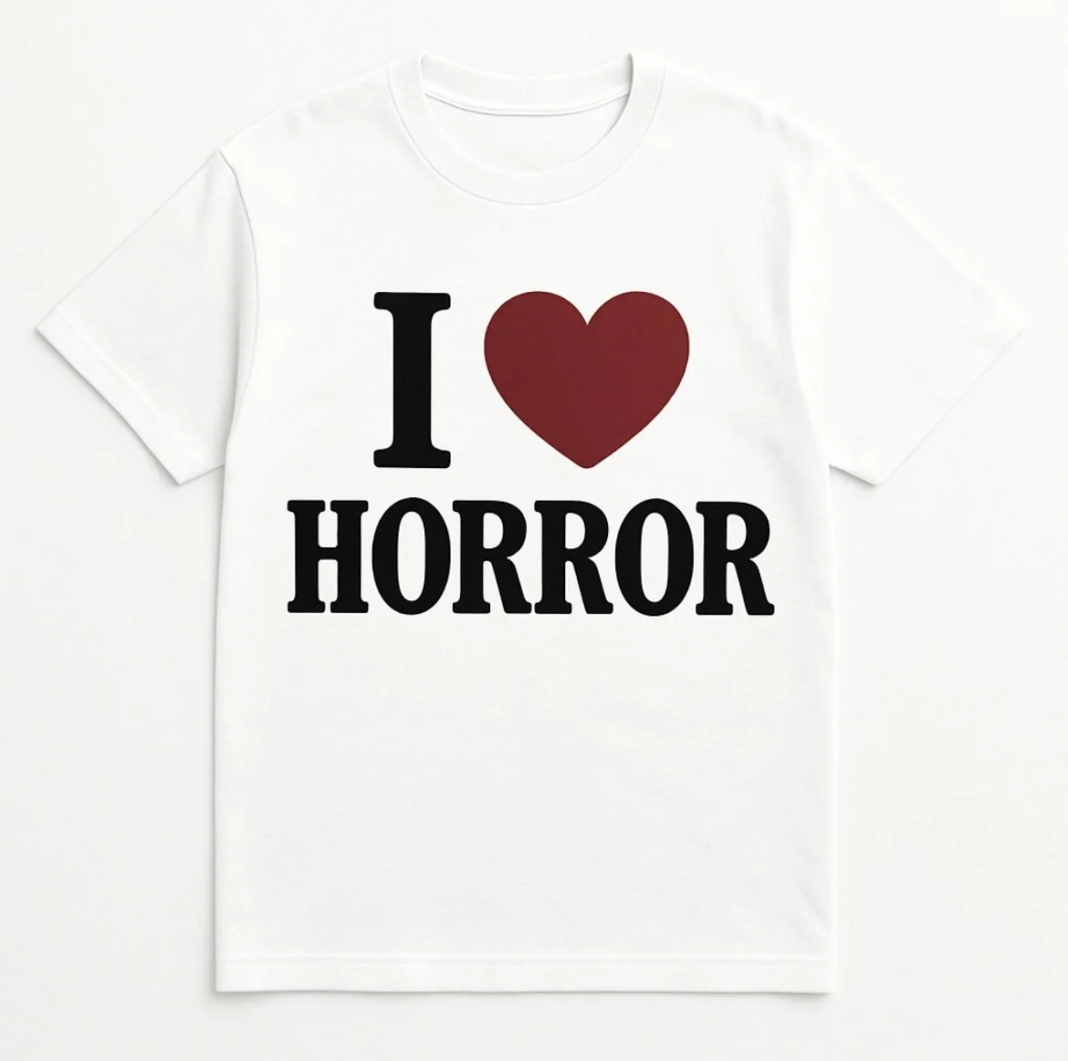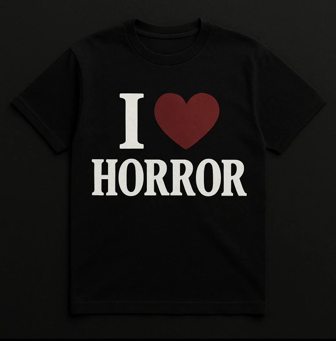 CREATING LOVE AT FIRST FRIGHT SHOP SHOP I 🖤 HORROR I 🖤 HORROR I 🖤 HORROR THE LATEST DROP BLACK TEE $30 RED TEE $30 WHITE TEE $30 I 🖤 HORROR I 🖤 HORROR I 🖤 HORROR